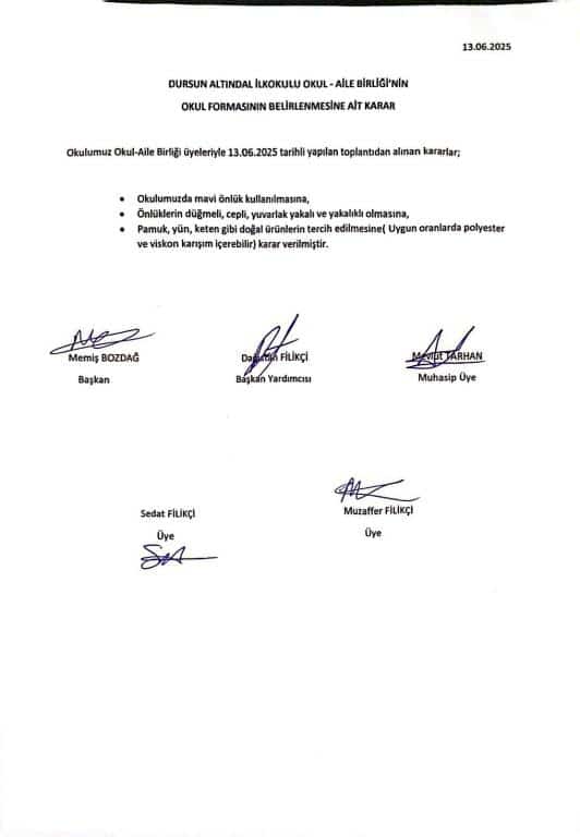 Okulumuzdaki 2025-2026 eğitim öğretim yılı itibariyle okul forması için alınan karar ve örnek içerik ekte gösterildiği gibidir. Velilerimizin bilgisine.